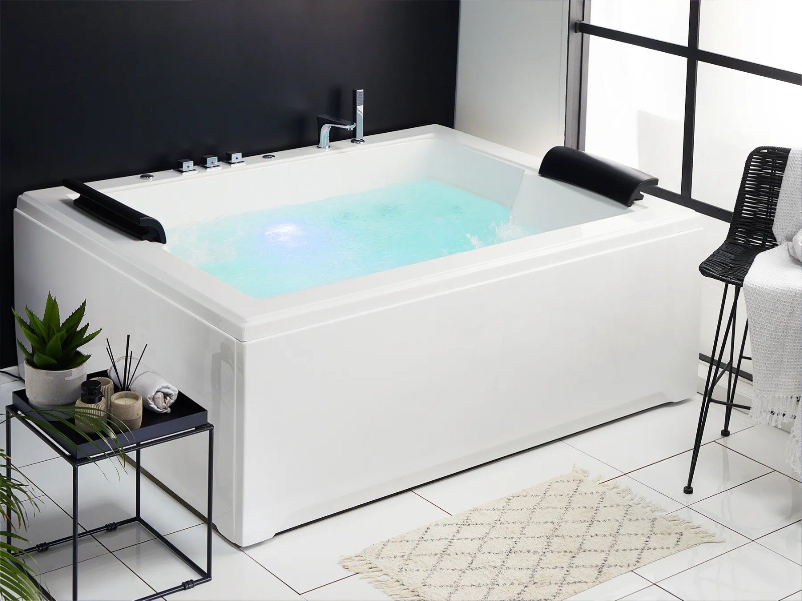 Regenérese y relájese después de un largo día con esta bañera de hidromasaje, diseñada para dos personas. Los reposacabezas en ambos lados aumentan el confort, mientras que el diseño elegante y moderno eleva el aspecto de cualquier baño.