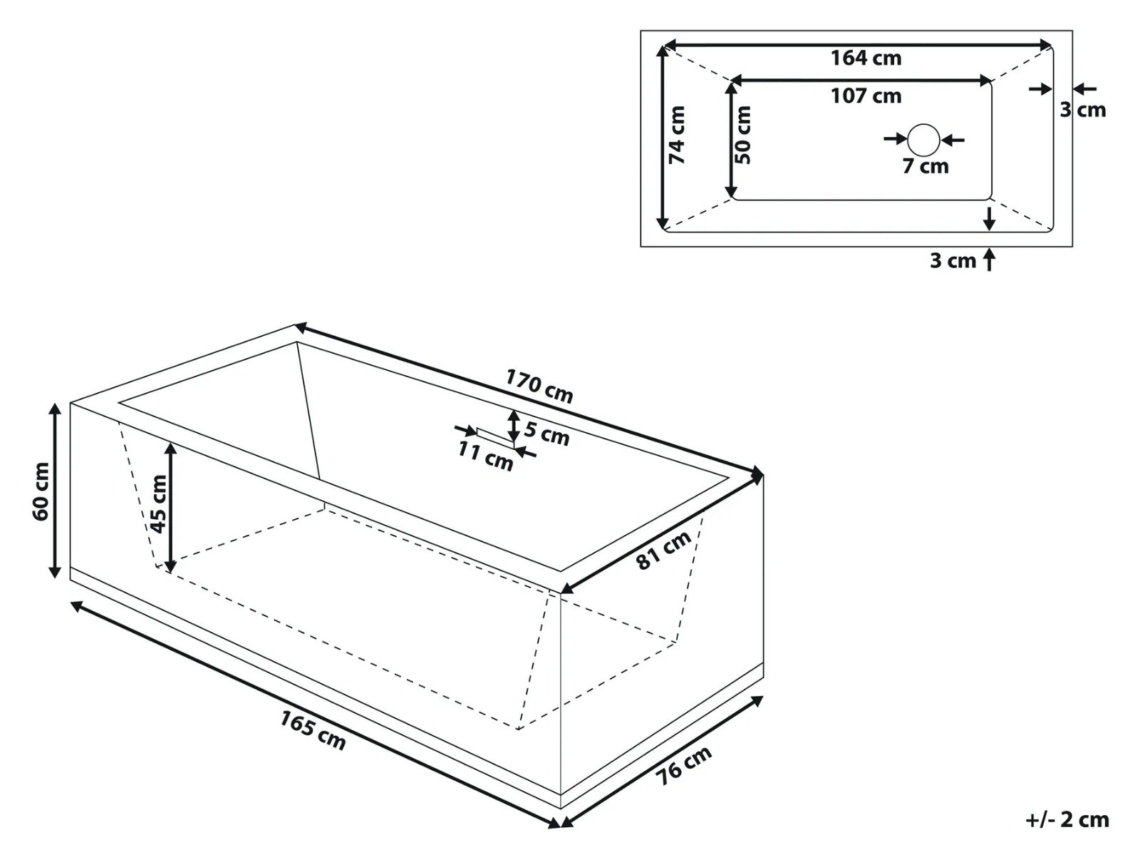 Dimensiones: 170 cm (largo) x 80 cm (ancho) x 60 cm (alto)