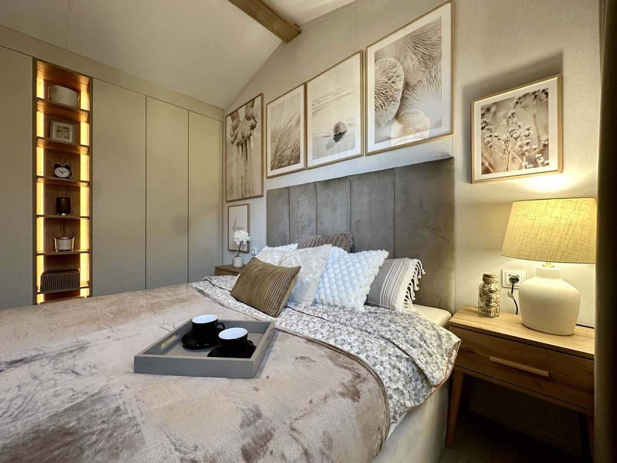 El interior está terminado con paneles de pared y techo y molduras.