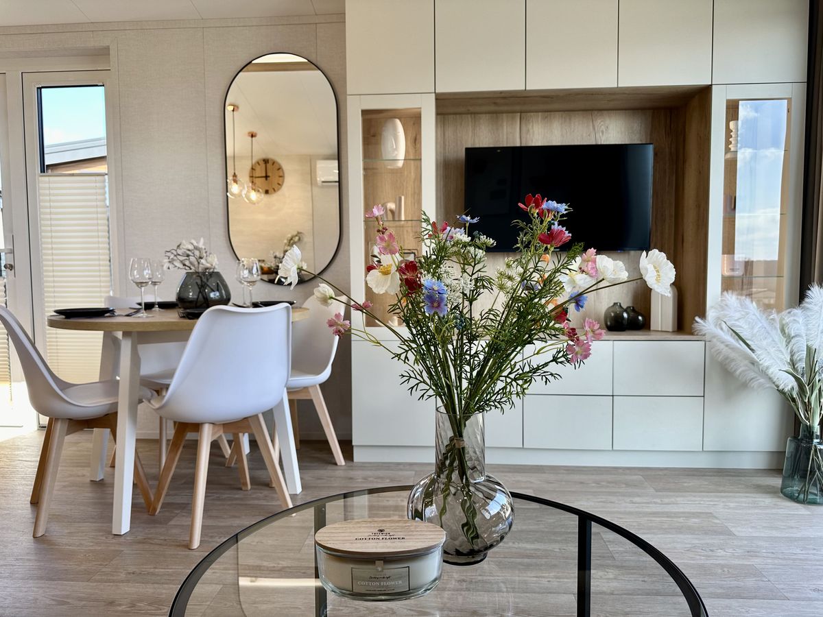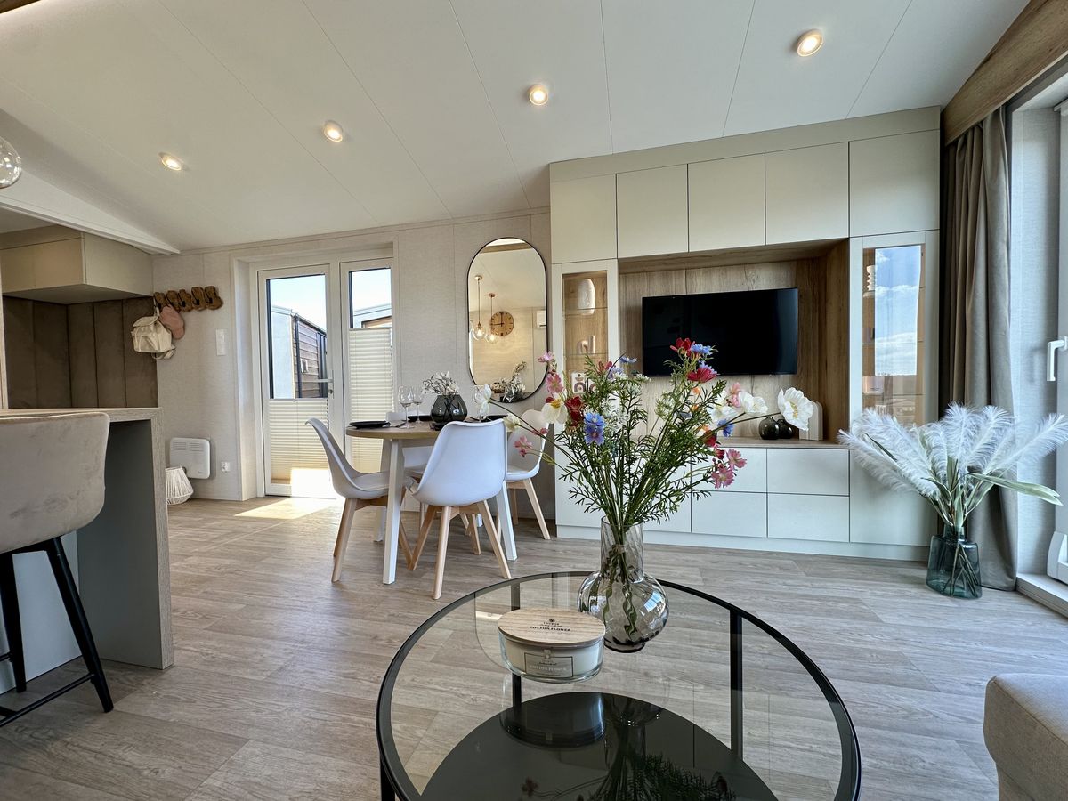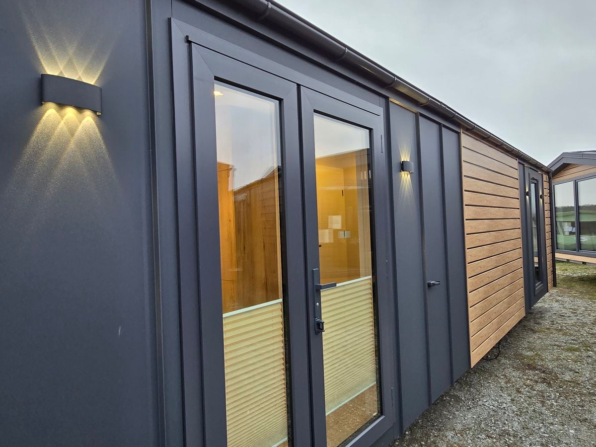 La estructura de la casa está hecha de acero y madera, y el chasis de la casa está hecho de acero galvanizado en caliente.