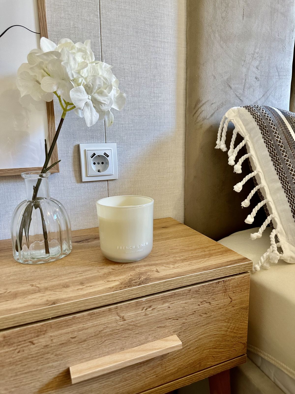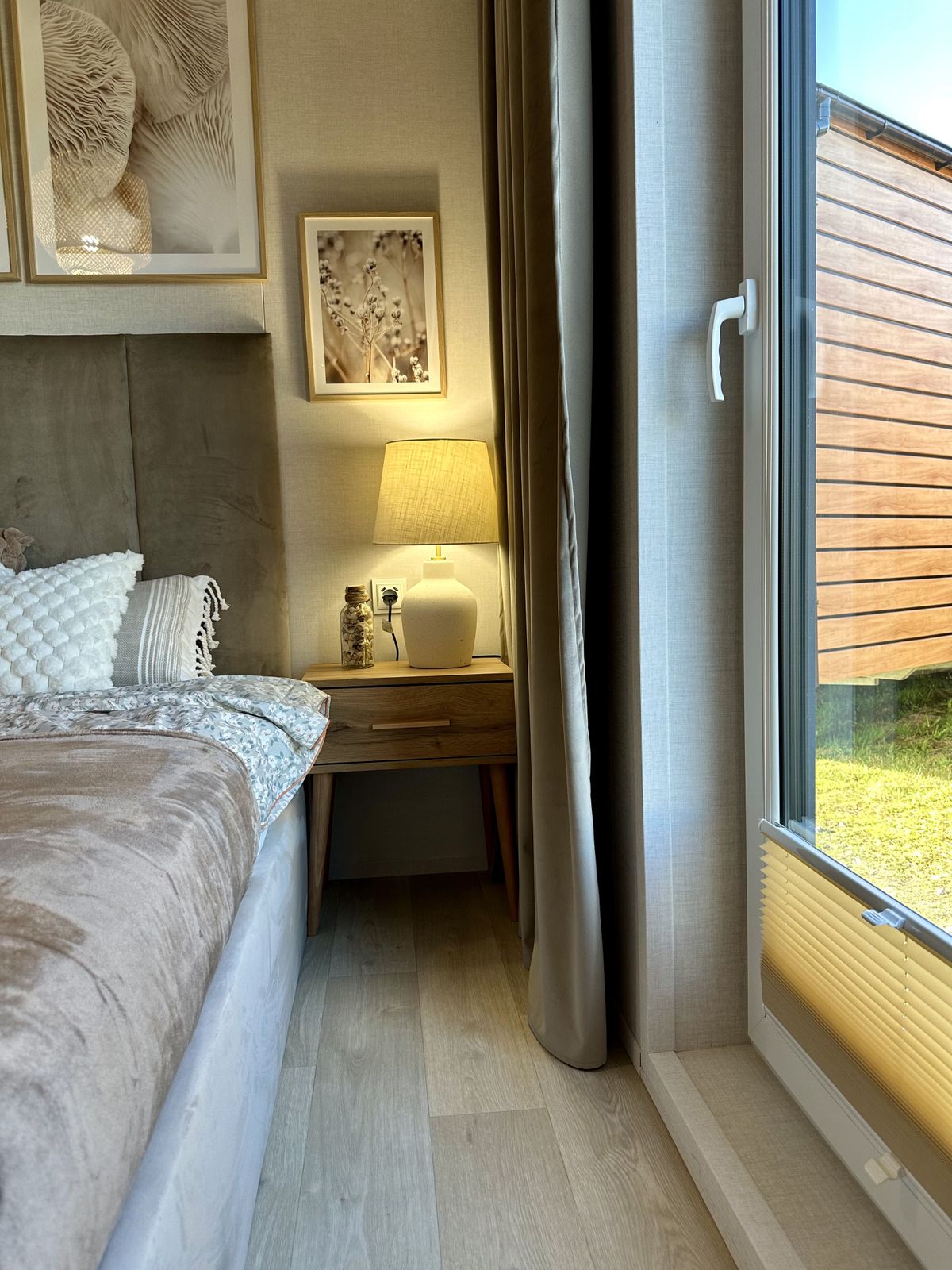 Decoraciones: lámpara de noche, espejo, cuadros