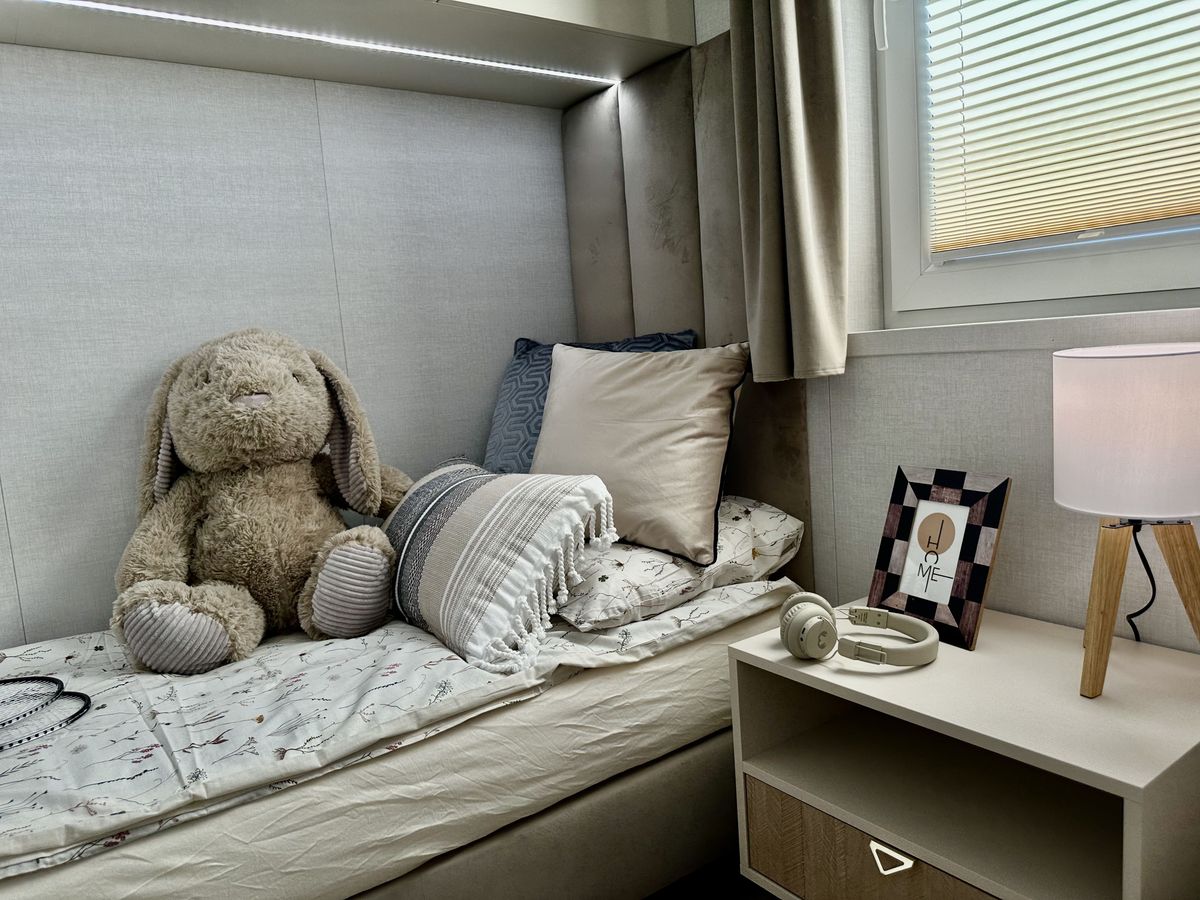 Una mesita de noche en cada dormitorio.