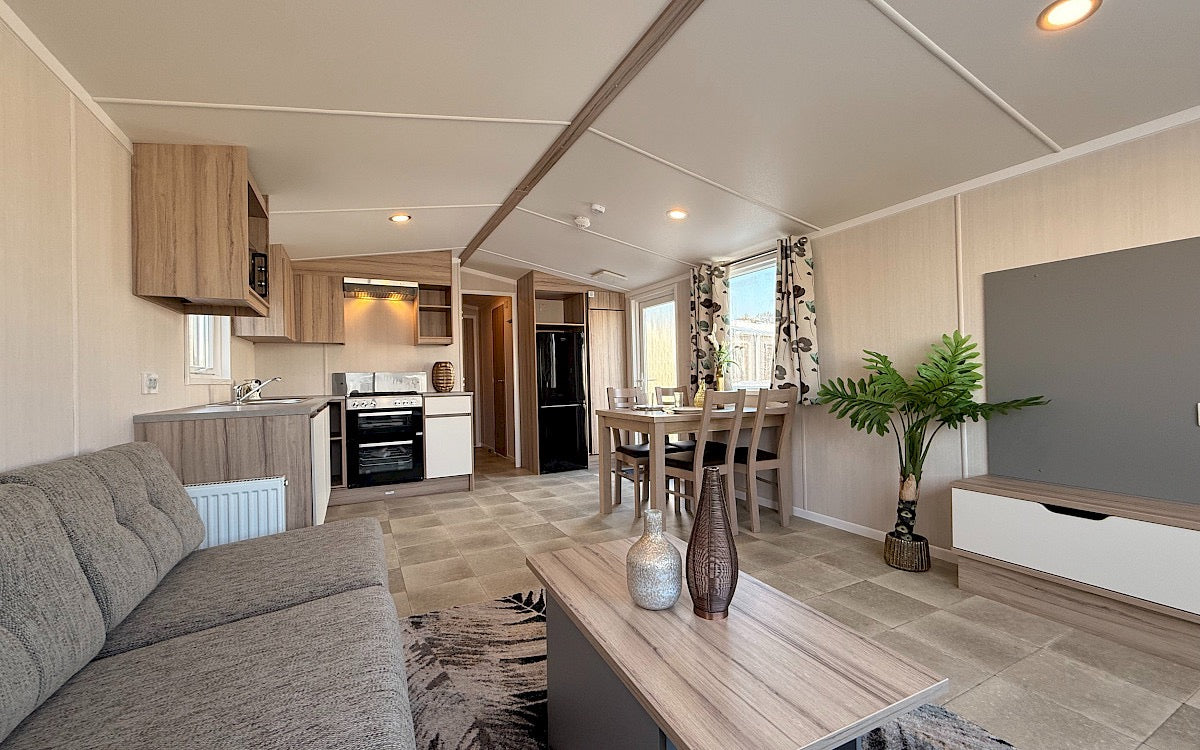 El Swift Royan ofrece una combinación perfecta de estilo y espacio práctico, completamente amueblado y listo para entrar a vivir. Las áreas de estar, comedor y cocina de planta abierta crean un ambiente acogedor, mientras que las ingeniosas soluciones de almacenamiento y la moderna tapicería garantizan un confort óptimo. Los cómodos colchones garantizan un sueño reparador. La cocina está bien equipada con una placa de gas de 4 fuegos, horno, frigorífico-congelador y espacio para un microondas. El Royan es ideal para quienes buscan un alojamiento vacacional cómodo y asequible.