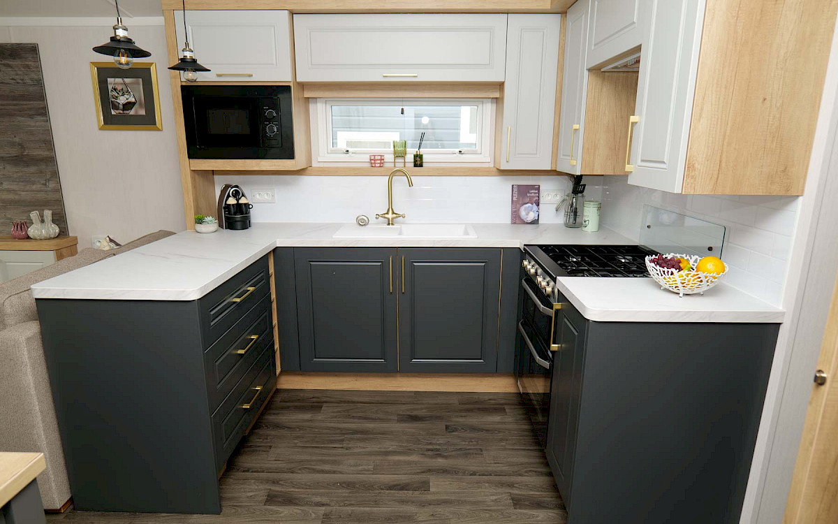 El Swift Bordeaux está amueblado con estilo, una casa de vacaciones moderna y práctica. El salón del Bordeaux es muy luminoso gracias a las grandes puertas correderas en la parte delantera. También cuenta con una lujosa cocina en forma de U con hermosos detalles y cómodos muebles. El Bordeaux está disponible con 2 o 3 dormitorios y, por supuesto, un hermoso baño. El Swift Bordeaux es el chalet vacacional ideal para crear recuerdos inolvidables con su ser querido.