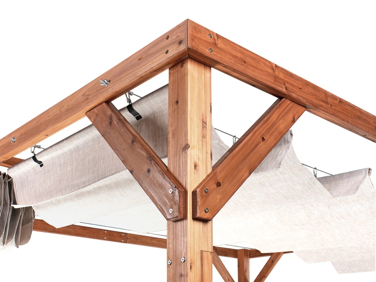 Este gazebo es la solución perfecta para crear un espacio acogedor y natural en tu exterior. Con su elegante estructura de madera de abeto y su diseño atemporal, aporta un toque de calidez y estilo a cualquier jardín o terraza.