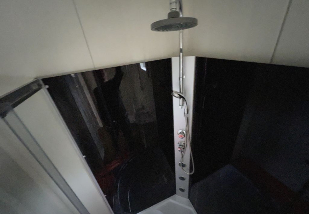 ✔️ Baño completo con WC, ducha de lujo y lavabo con mueble